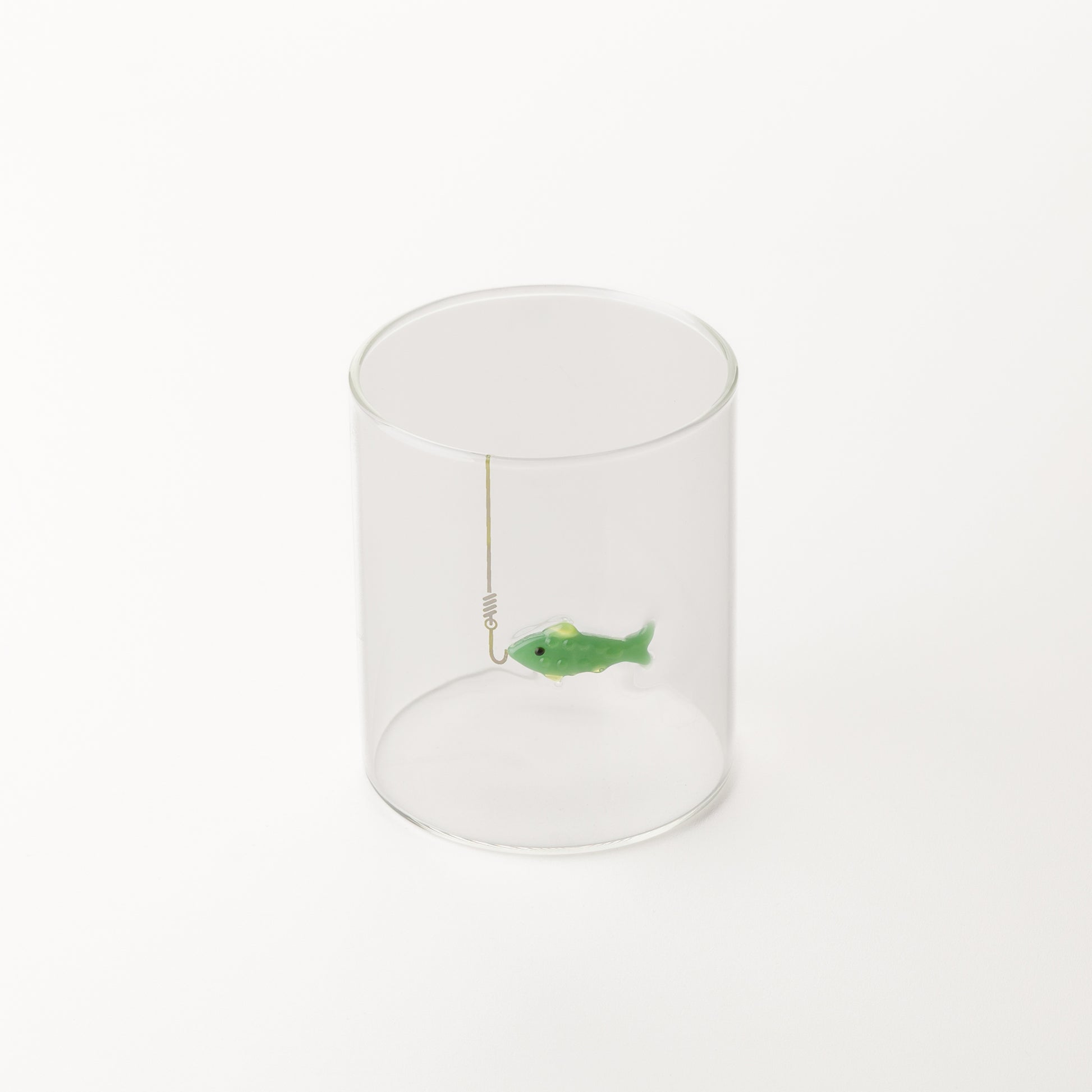 Очарователна прозрачна стъклена чаша с релефна фигурка на рибка на повърхността. Изработена от висококачествено боросиликатно стъкло, тя е лека, елегантна и устойчива на температурни промени. Подходяща е за студени напитки.