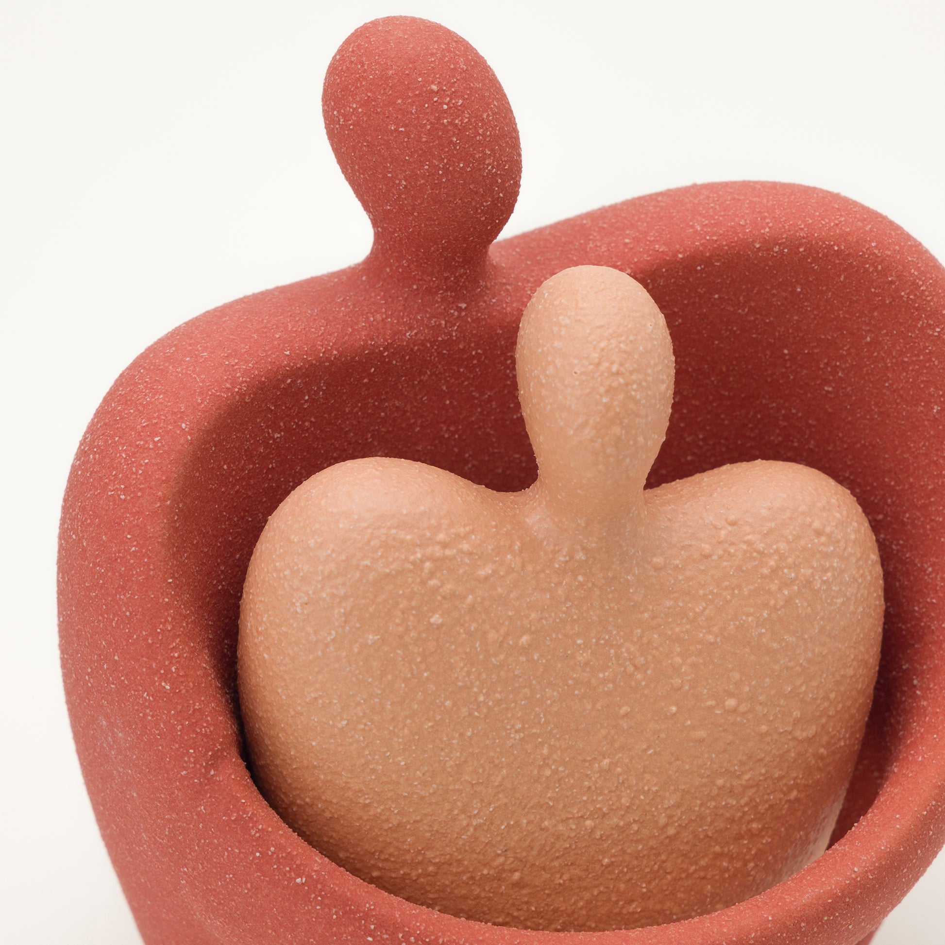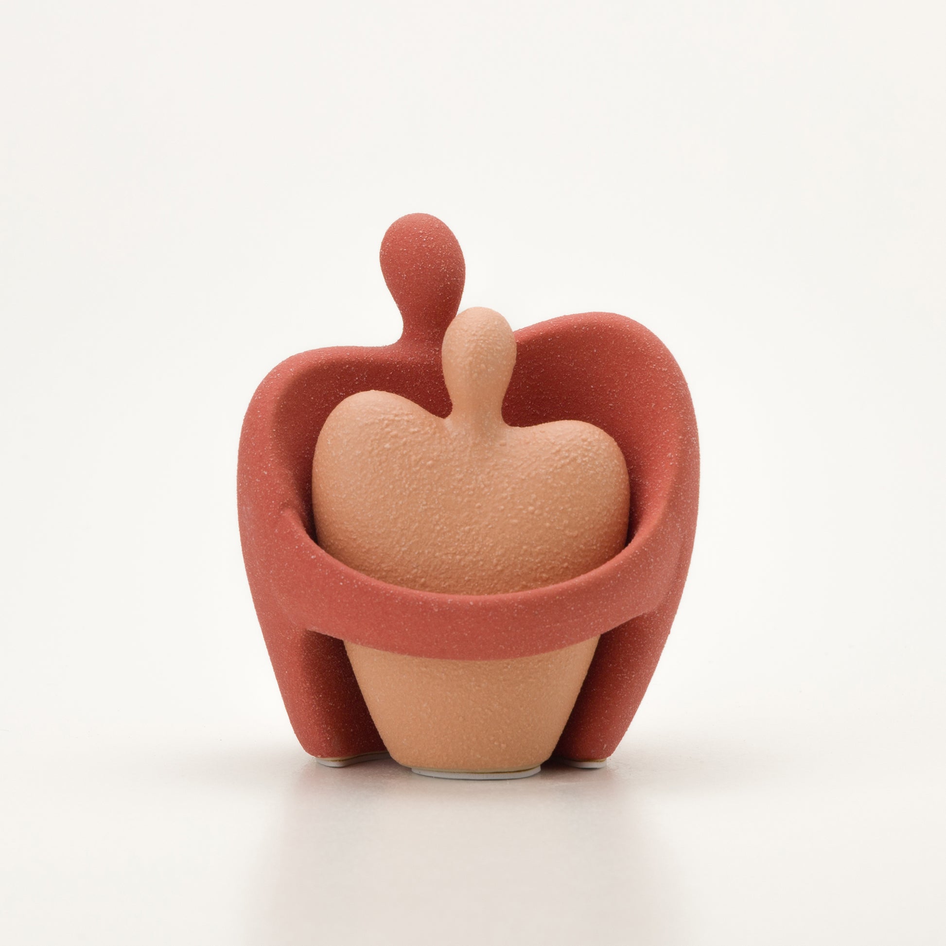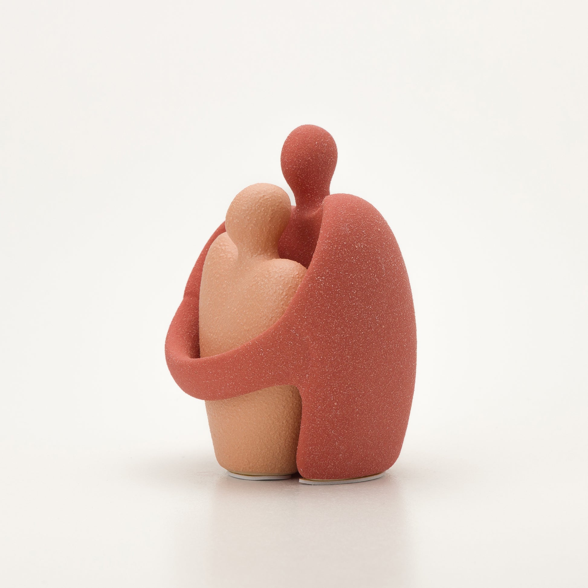 Скулптурата „Прегръдка“ е символ на връзката между най-близките ни хора – родител и дете, партньори, семейство. Топлите тонове и органичните линии създават усещане за спокойствие и хармония, а фростираната текстура придава естествен, „земен“ характер.