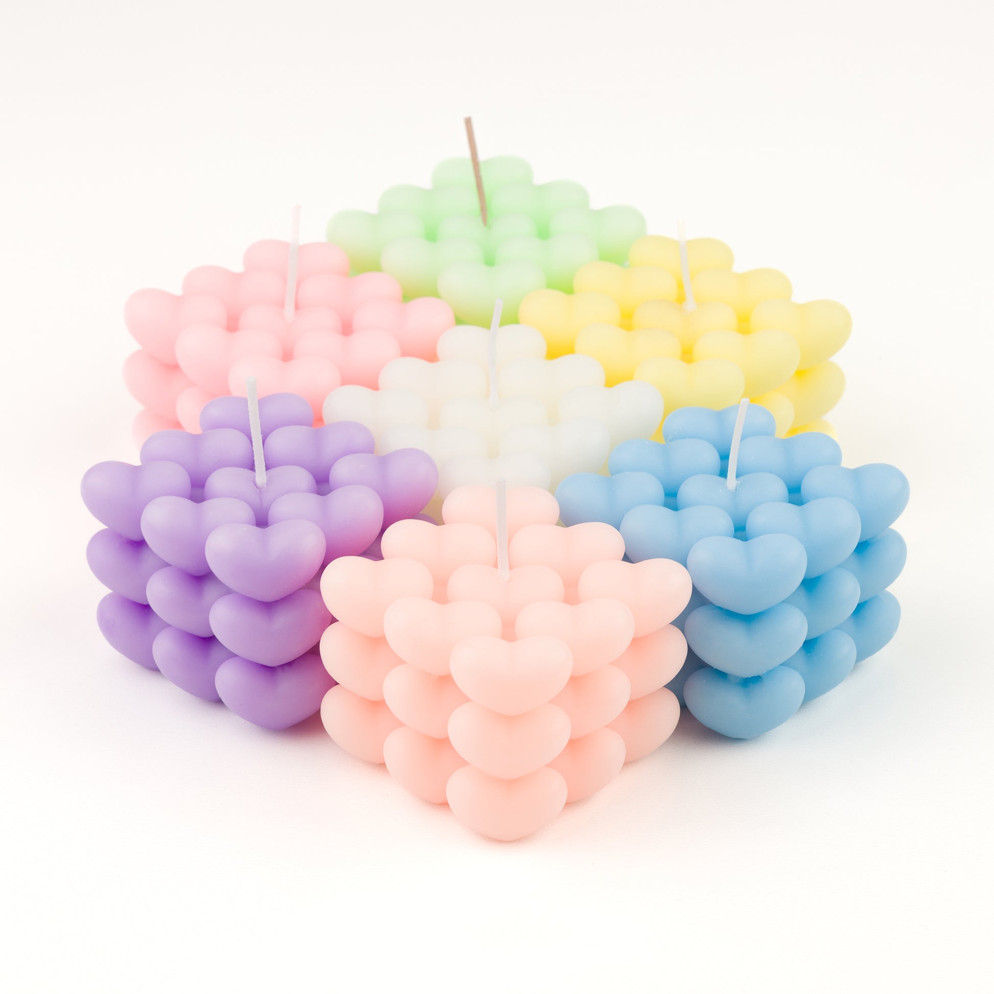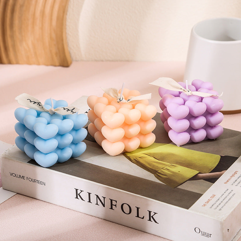 Добавете топлина и чар към вашето пространство със свещта Mini Heart Cube – романтичен и игрив прочит на класическия дизайн с балончета.