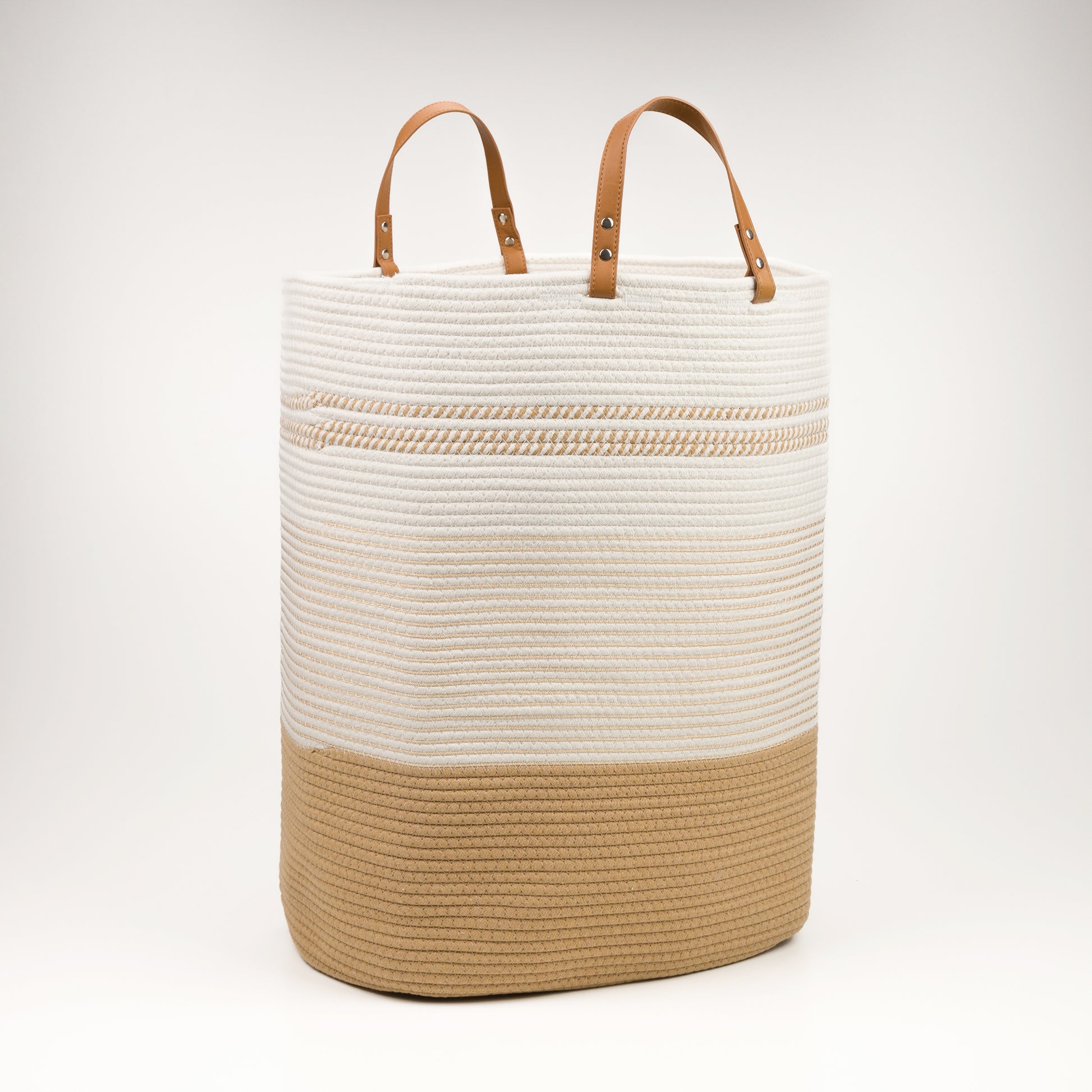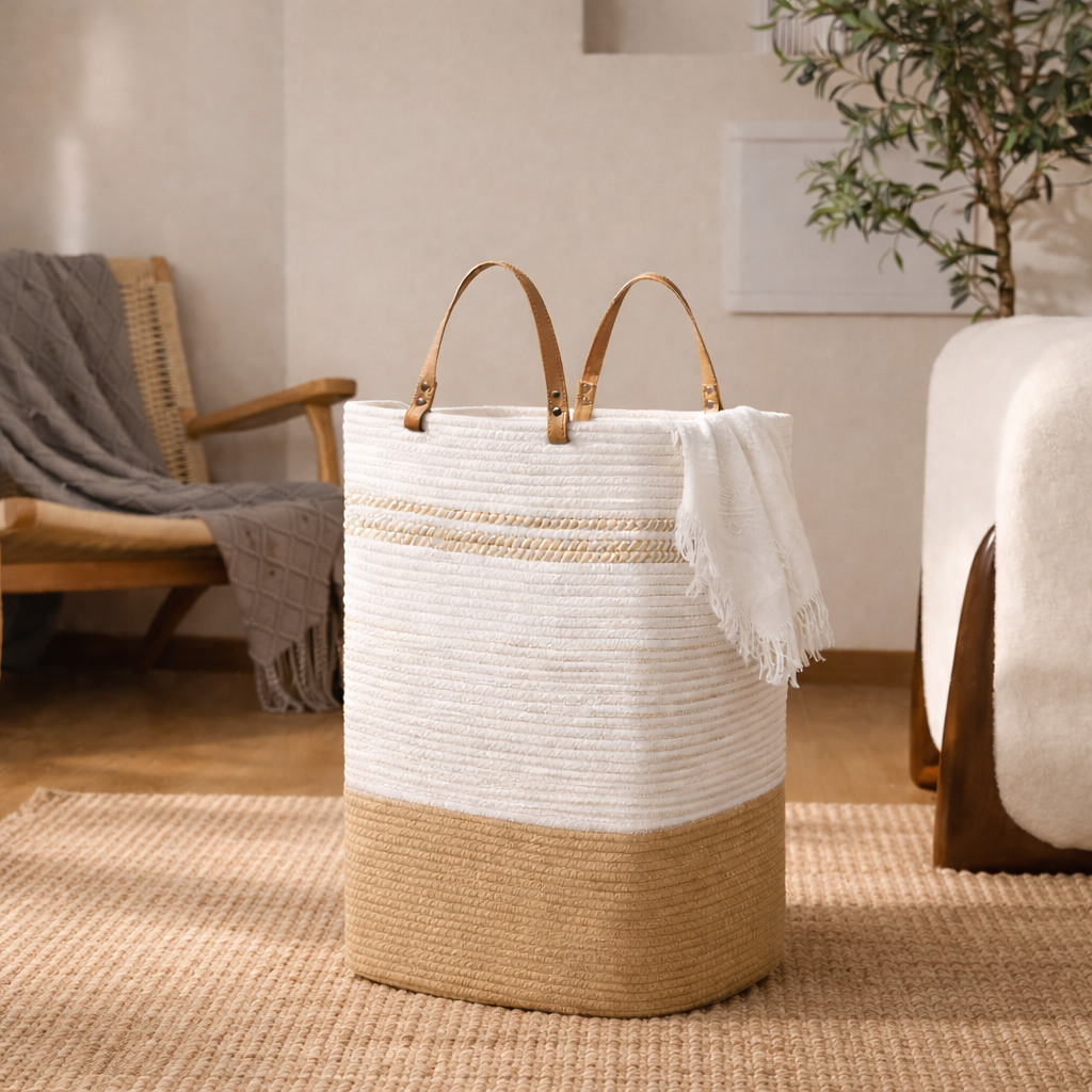Голям плетен кош за съхранение с дръжки – 75L | Бежово & Екрю