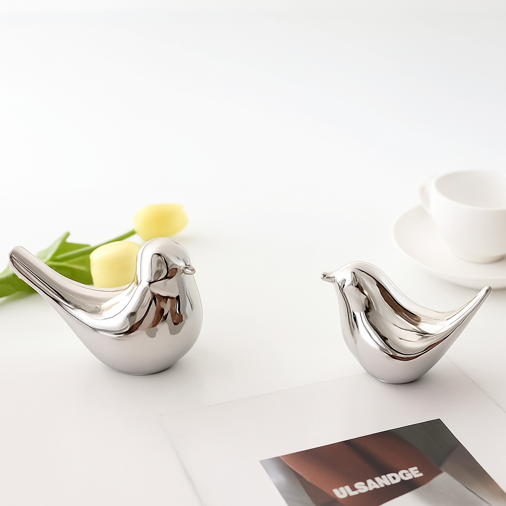 Внесете модерен блясък и елегантност в дома си с декоративната фигура „Сребърна птица“.