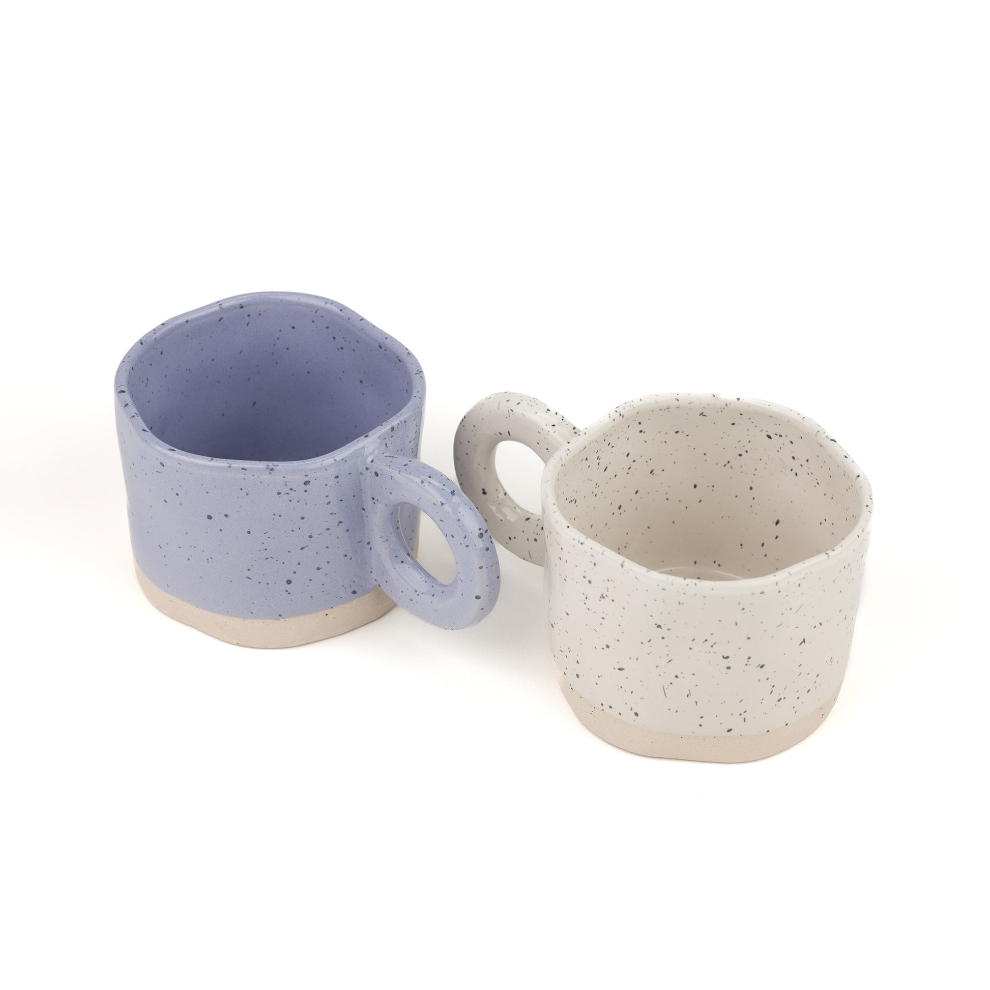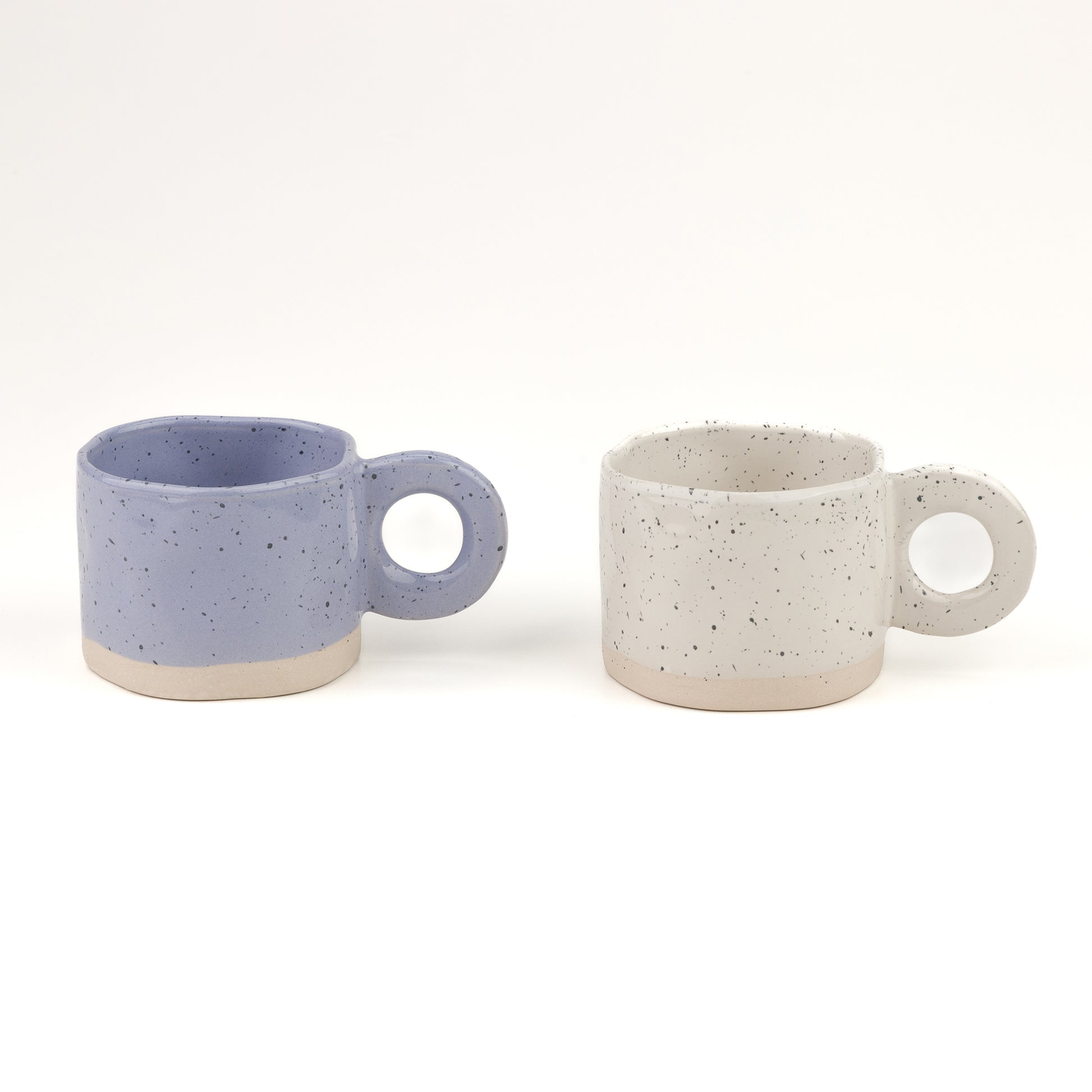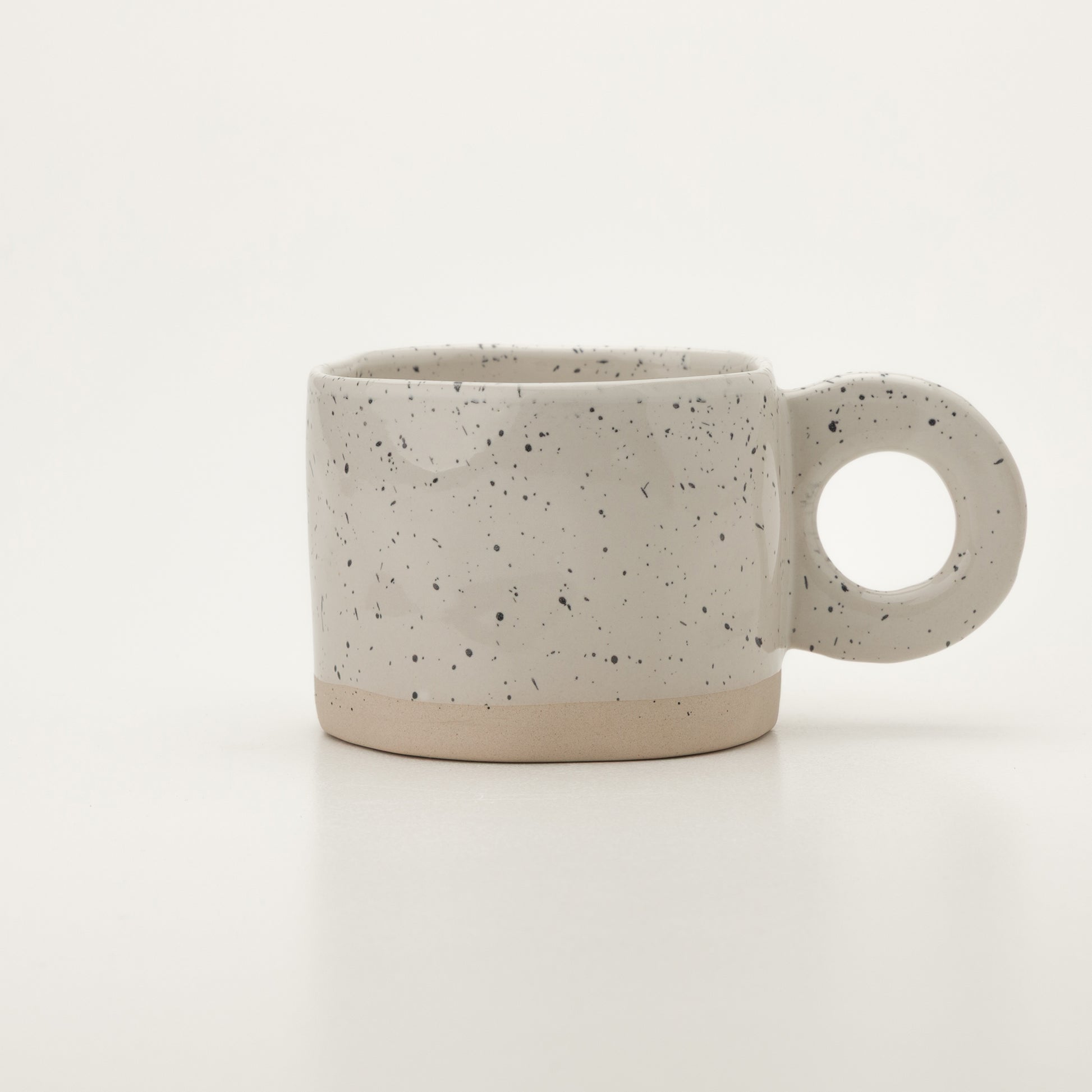 Ръчно изработена керамична чаша с дръжка пръстен – петниста глазура