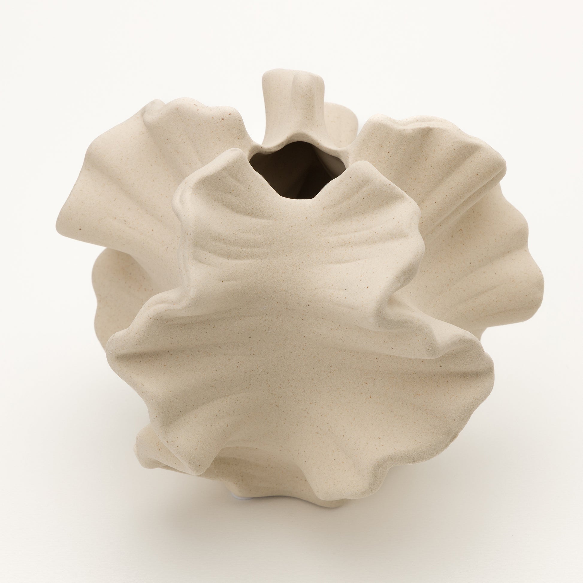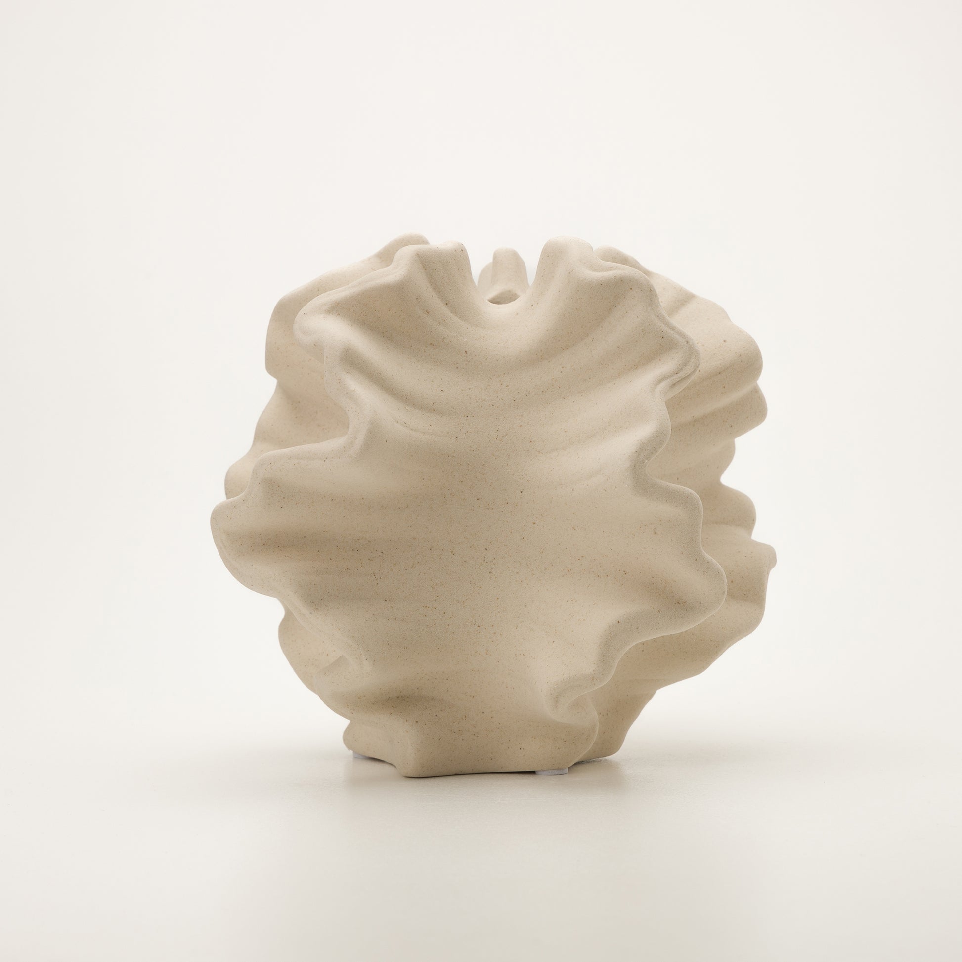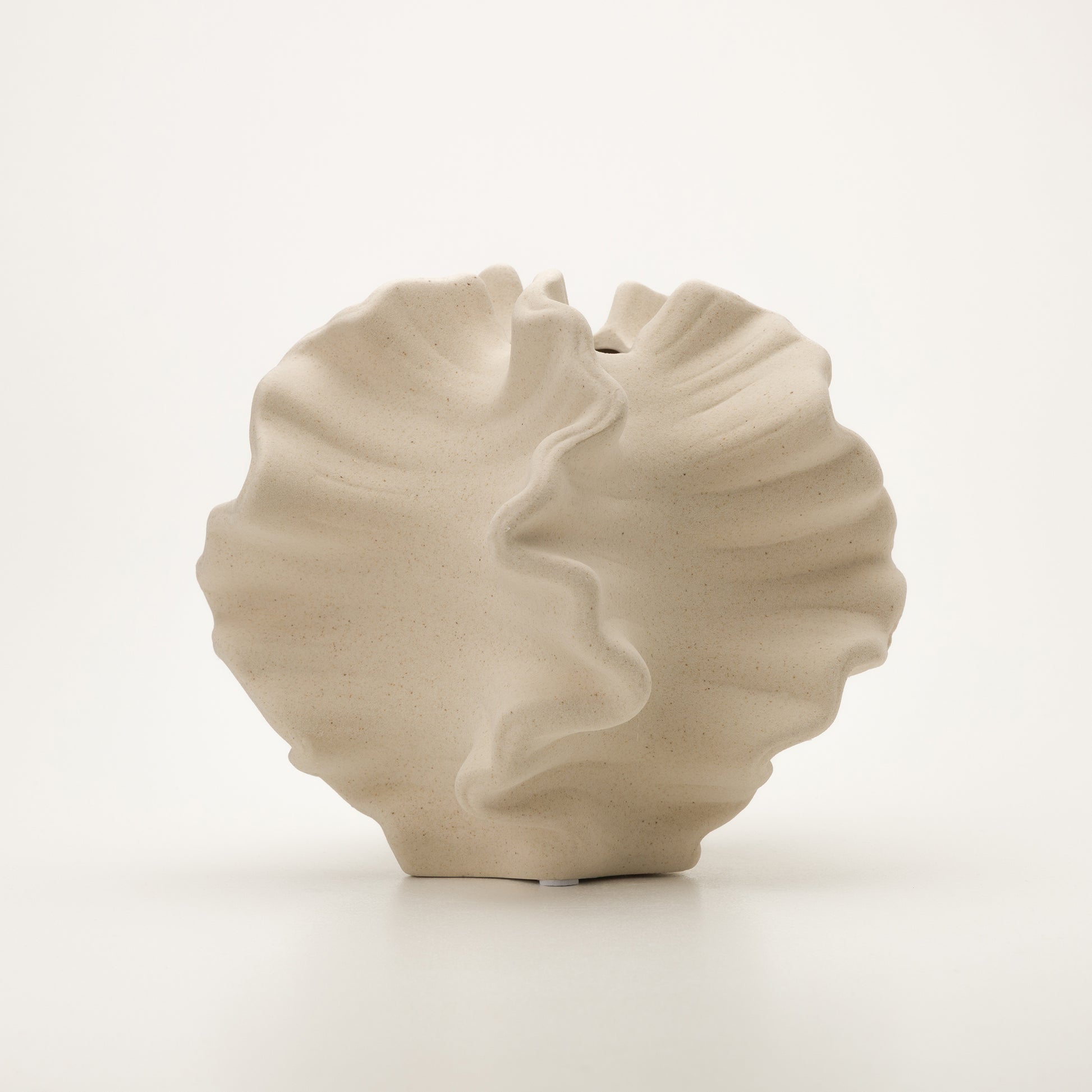 Скулптурна керамична ваза с артистична форма, вдъхновена от естествените извивки на плода каромболa.